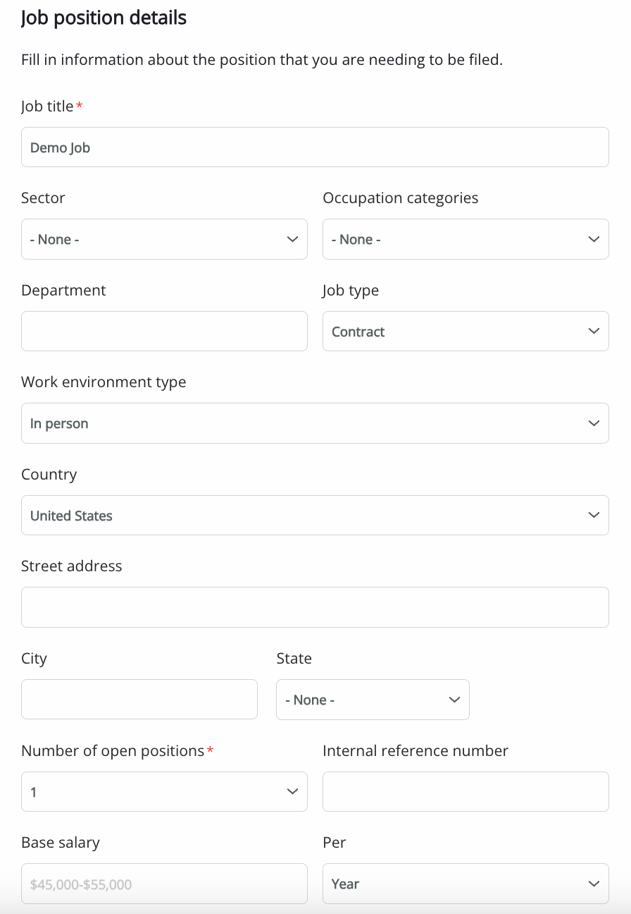 11. Once you have entered all the required information, you can either Save Draft (which will keep your job posting private, so only you can view) or Create Job (which will make your job posting visible to the public).