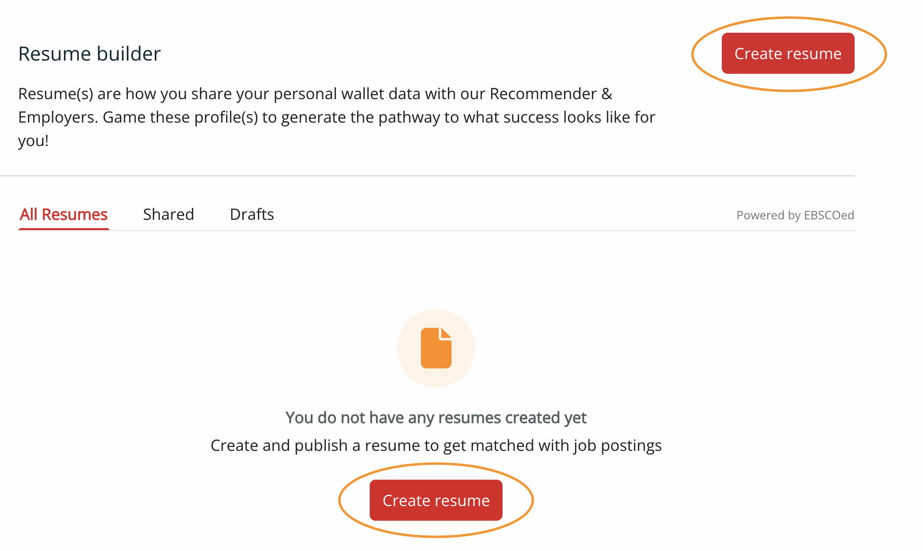2. Click on one of the red "Create resume" buttons.