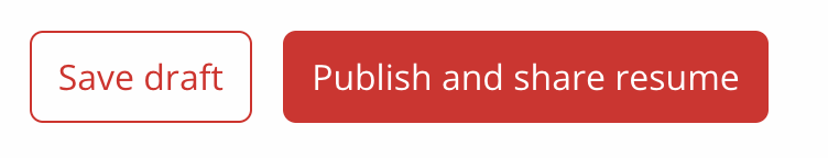 5. Then, either save as Draft (which will keep your resume private, so only you can view) or Publish (which will allow employers to view).