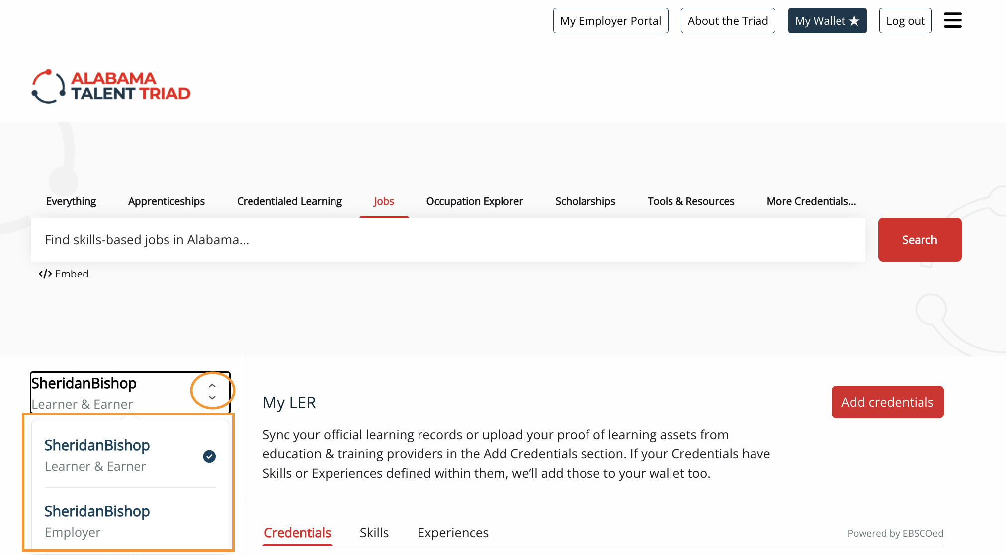 Learner/Earners are job seekers and individuals looking to further their education through academic or hands-on apprenticeships. Employers are businesses looking to hire for open positions. When you login to Alabama Talent Triad, you will be assigned a Learner/Earner profile. If you want to have an Employer profile, you need to request access to use the employer functions from My Employer Portal. (See this article on how to request expanded access to Employer Portal)