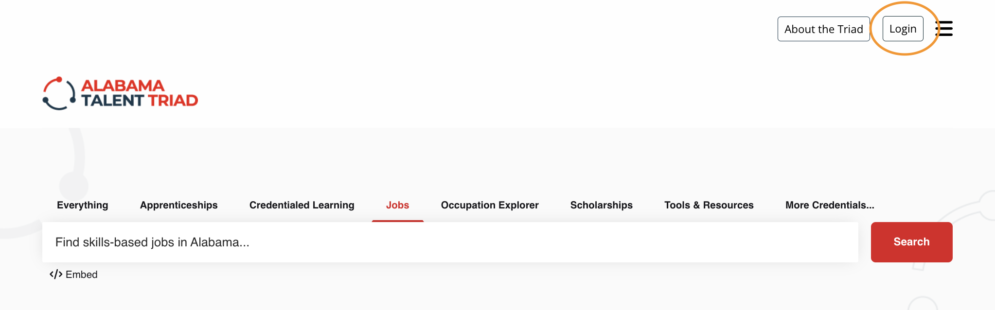 - Visit talent.alabamaworks.com and click on the Login button at the top right.
