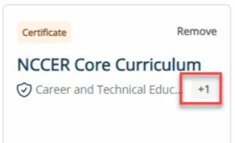 It is possible for a credential or skill to be Verified by multiple education and training providers. This will show as a "+1" with the first verifying organization visible on the record.