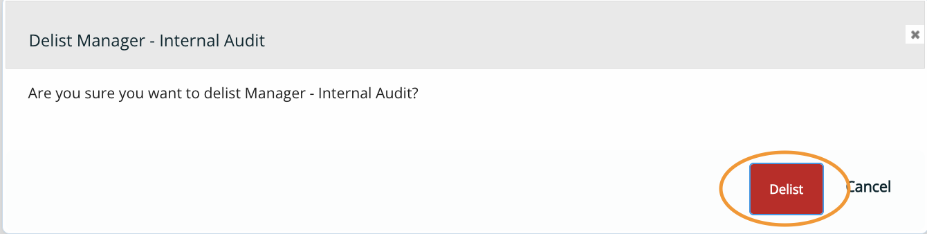 5. If you choose to Delete, a popup message will appear to confirm this action, click Delist.