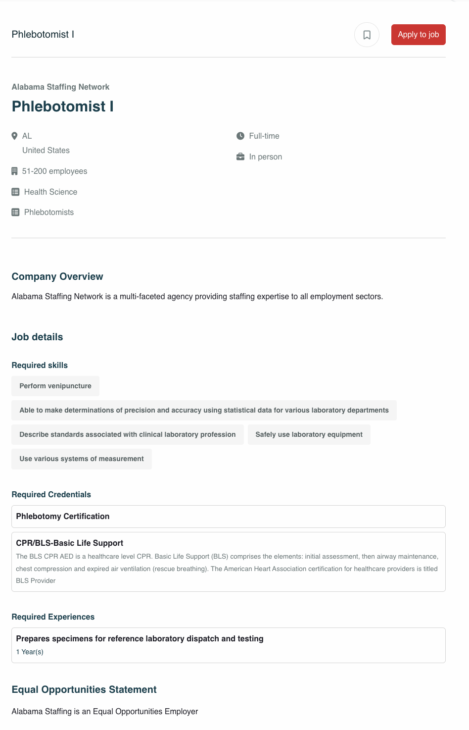 5. You will be taken to your selected job's description page. This is how your posting will be seen by applicants.