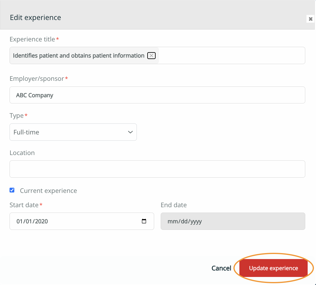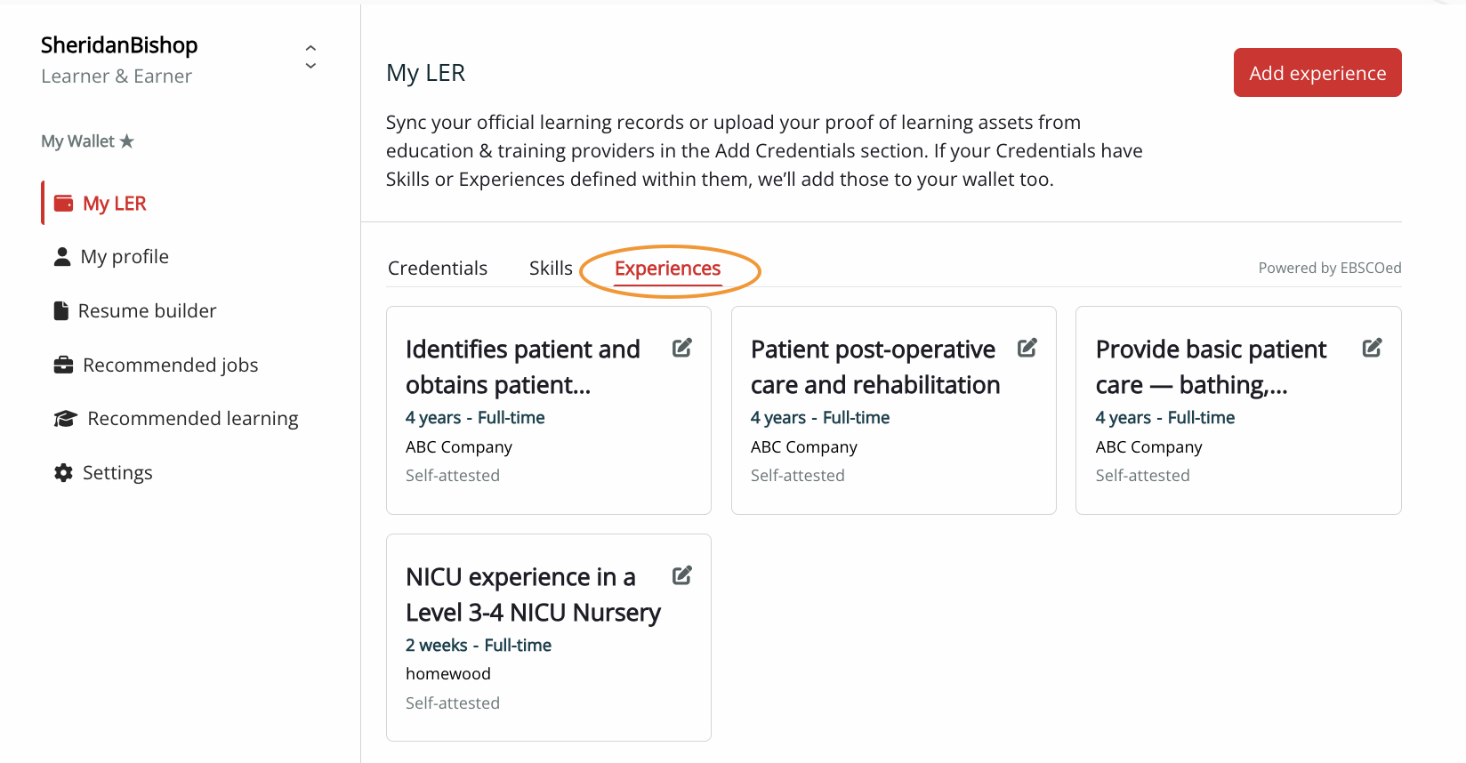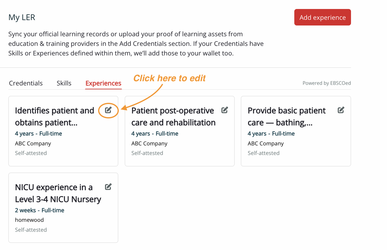 3. Find the experience you wish to edit and click on the icon at the top right corner.